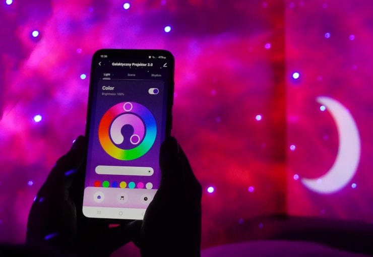 Ustal godziny w których projektor ma się włączyć lub wyłączyć i zasypiaj w otoczeniu nieziemskich widoków galaktyki.