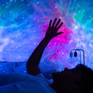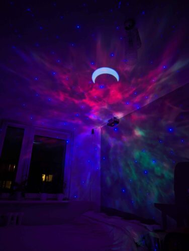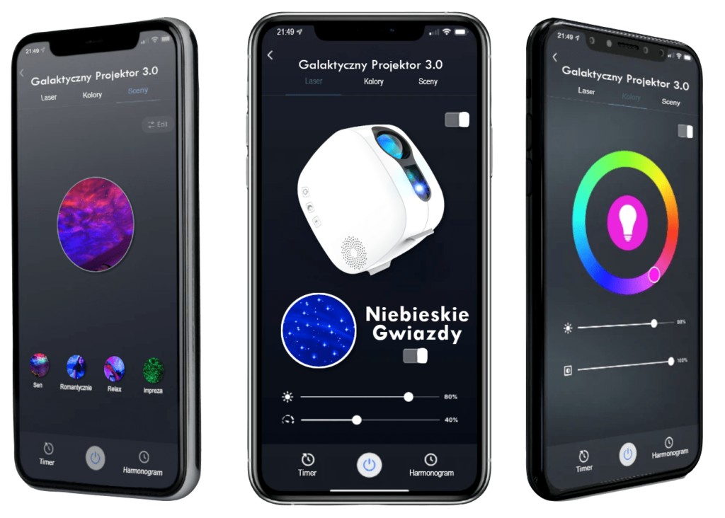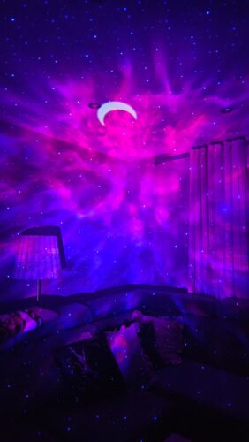 Ustal godziny w których projektor ma się włączyć lub wyłączyć i zasypiaj w otoczeniu nieziemskich widoków galaktyki.