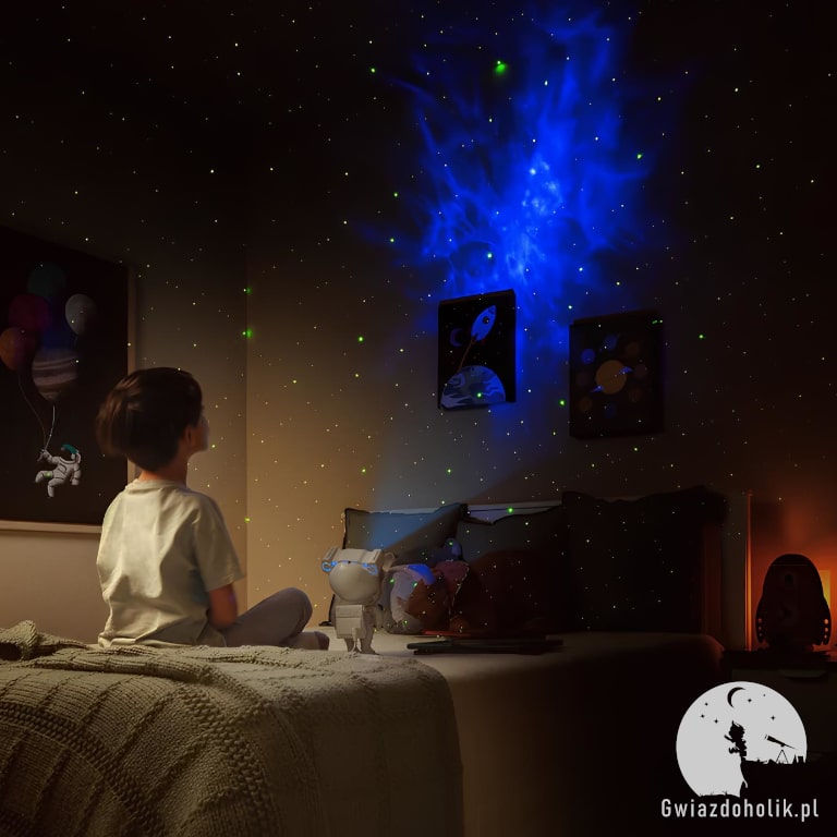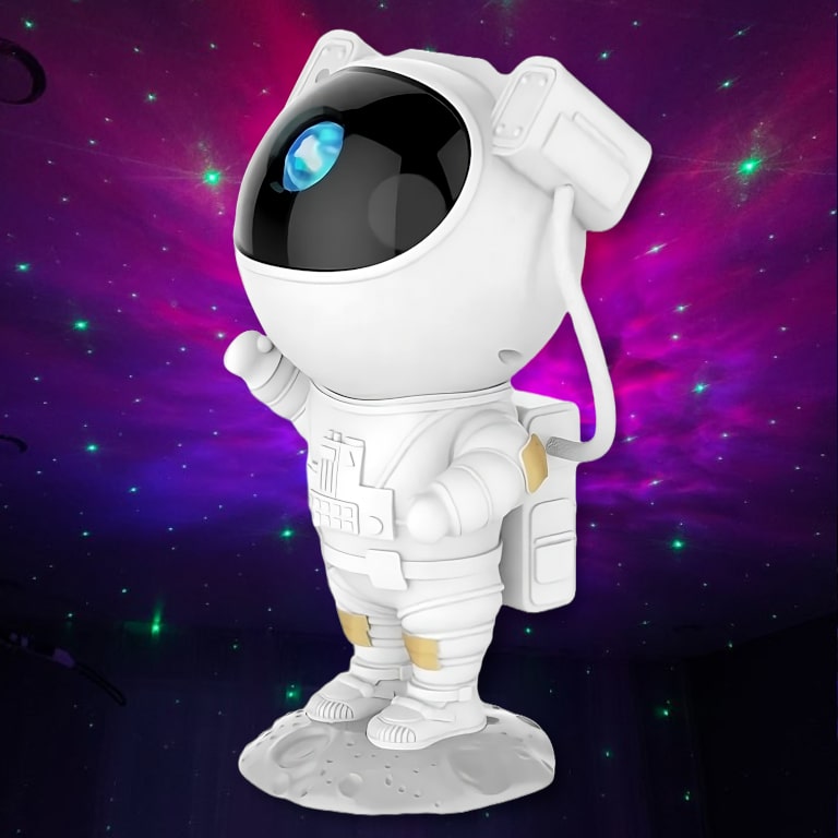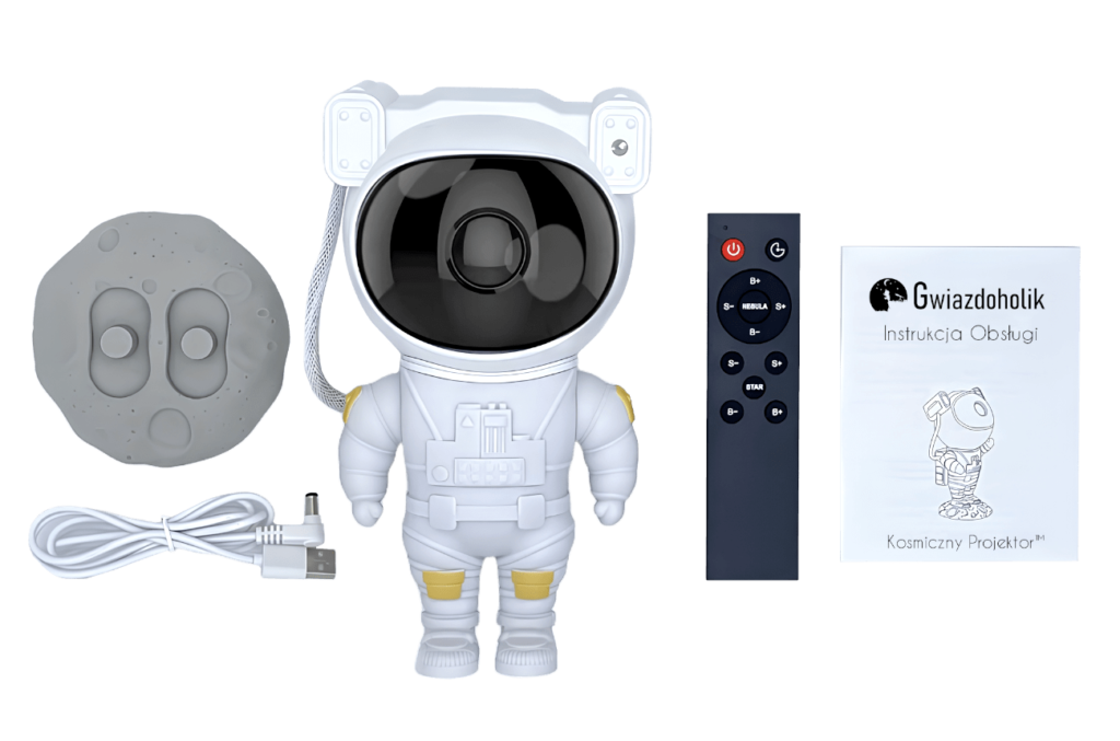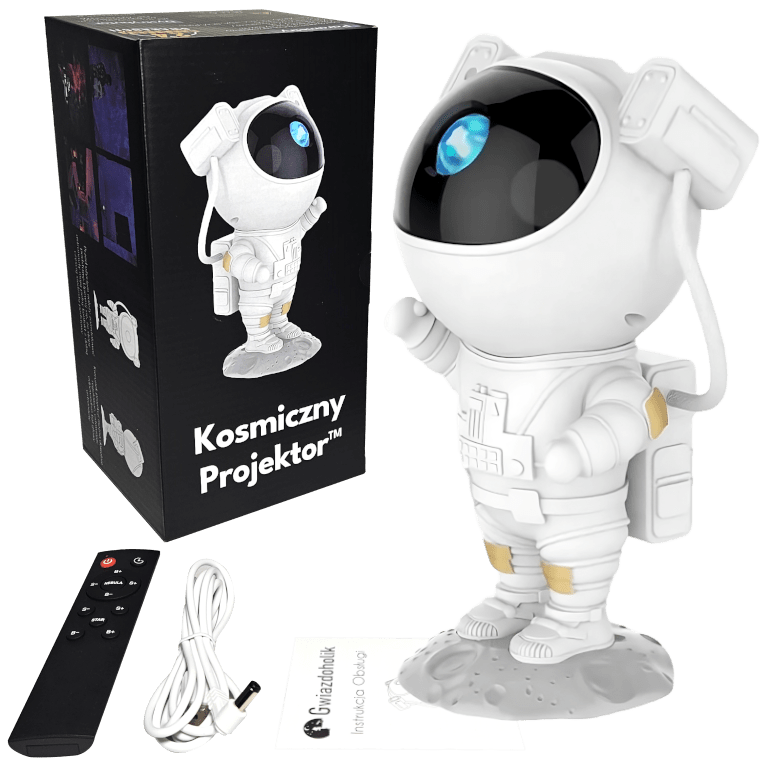 Wprowadź kosmiczną atmosferę do życia Swojego dziecka z Kosmicznym Projektorem. Uroczy astronauta nie tylko kreuje fascynujące projekcje galaktyczne, lecz także inspiruje i wspomaga rozwój kreatywności podczas wspólnej zabawy. Podaruj Twojemu dziecku szansę na nocne opowieści spod gwiazd i pobudź jego wyobraźnie.