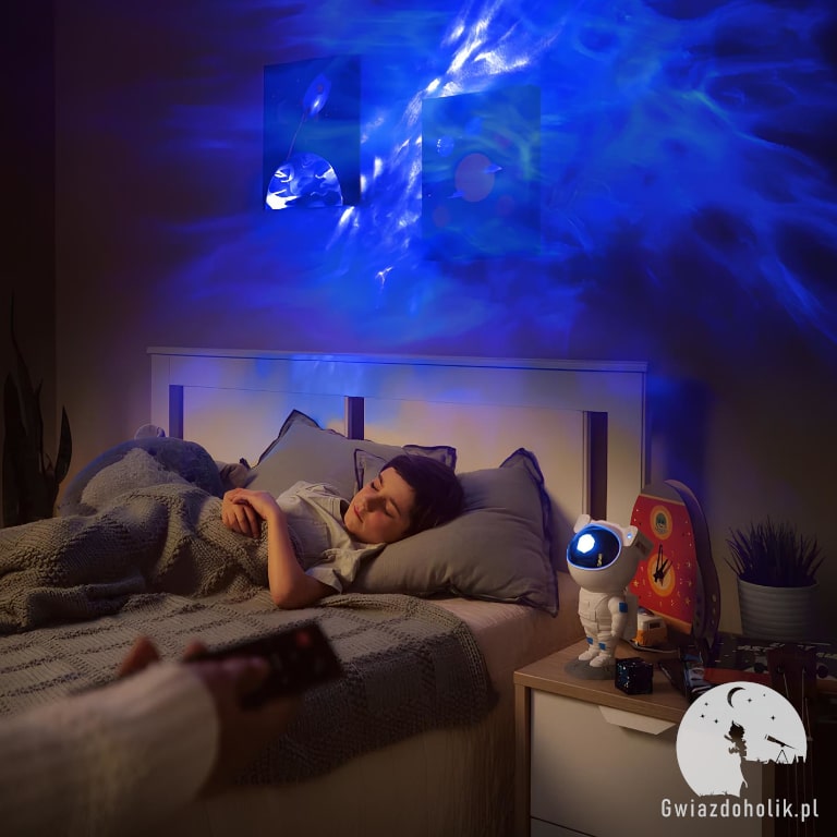 Specjalnym pilotem zmienisz tryby oświetlenia, jasność, szybkość poruszania kosmosu oraz ustawisz czas uśpienia po 45 lub 90 minutach.
