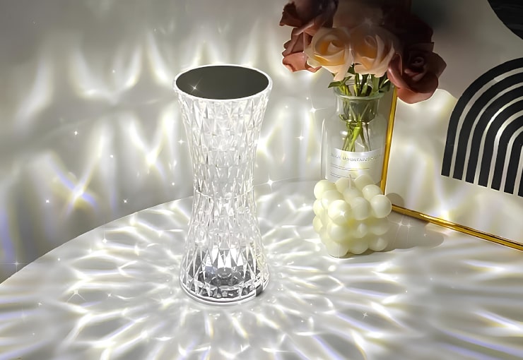 - Hipnotyzujący Efekt Światła Kryształowego: Lampa Kryształowa™ wykorzystuje specjalnie zaprojektowane elementy odbijające światło, tworząc efekt rozproszenia, który przypomina iskrzące się kryształy, dodając przestrzeni wyjątkowego charakteru.
